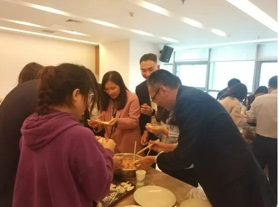 立冬是我國(guó)傳統(tǒng)的24節(jié)氣之一,俗話說(shuō)“立冬不端餃子碗 凍掉耳朵沒(méi)人管”,立冬吃餃子也是我國(guó)的傳統(tǒng)習(xí)俗。為活躍員工文化生活,促進(jìn)同事之間的友誼,讓大家度過(guò)一個(gè)快樂(lè)而又溫馨的節(jié)日,人事行政部在立冬來(lái)臨之前就早早做好了準(zhǔn)備,并在立冬這一天組織“喜迎立冬·快樂(lè)包餃”的活動(dòng)。 2019年11月8日下午,全體員工陸續(xù)在公司大會(huì)議室,桌上已經(jīng)擺放好了為大家精心準(zhǔn)備的食材。隨后每個(gè)人都開(kāi)始各顯身手,大家邊聊著家常話,邊包著餃子,一個(gè)個(gè)忙得不亦樂(lè)乎,現(xiàn)場(chǎng)熱鬧非凡。不一會(huì)兒各式各樣精巧的餃子在一片歡聲笑語(yǔ)中紛紛成形擺滿了托盤(pán),整個(gè)過(guò)程大家互幫互教,體驗(yàn)著協(xié)作的樂(lè)趣,感受著節(jié)日的溫情,好一幅冬日溫馨的“全家福”。 短短幾十分鐘,滿桌子的餃子陸續(xù)下鍋。不一會(huì)兒熱氣騰騰的餃子被端上了餐桌,大家迫不及待的品嘗著自己的“杰作”,對(duì)集體成果贊不絕口。 吃在嘴上,暖在心頭。一盤(pán)盤(pán)熱騰騰的餃子驅(qū)散了冬日的嚴(yán)寒,溫暖著每一位員工的心,品嘗自己親手包的餃子,分享勞動(dòng)的喜悅和節(jié)日的氣氛,希望立冬的一碗餃子能夠溫暖大家的身體,感受到節(jié)日的溫暖和公司的關(guān)懷。此次活動(dòng)不僅活躍了過(guò)節(jié)氣氛,同時(shí)也讓大家在活動(dòng)中增進(jìn)了交流,讓每一位員工充分感受到了企業(yè)的溫暖。簡(jiǎn)單的一份餃子,吃下去的是員工對(duì)兩江融資租賃“大家庭”的眷戀。